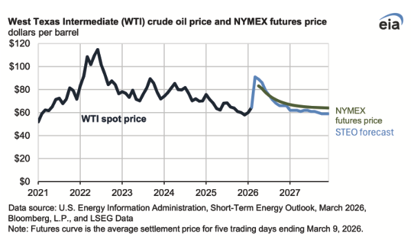 The EIA’s March Short-Term Energy Outlook, released on March 10, is the first official analysis of the effects of the Iran Conflict on the energy landscape. The following, and additional data, may be reviewed at www.eia.gov/outlooks/steo.